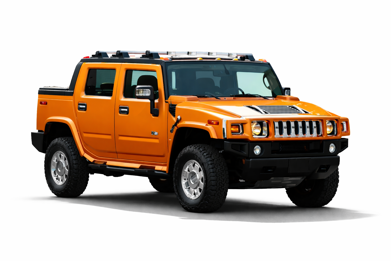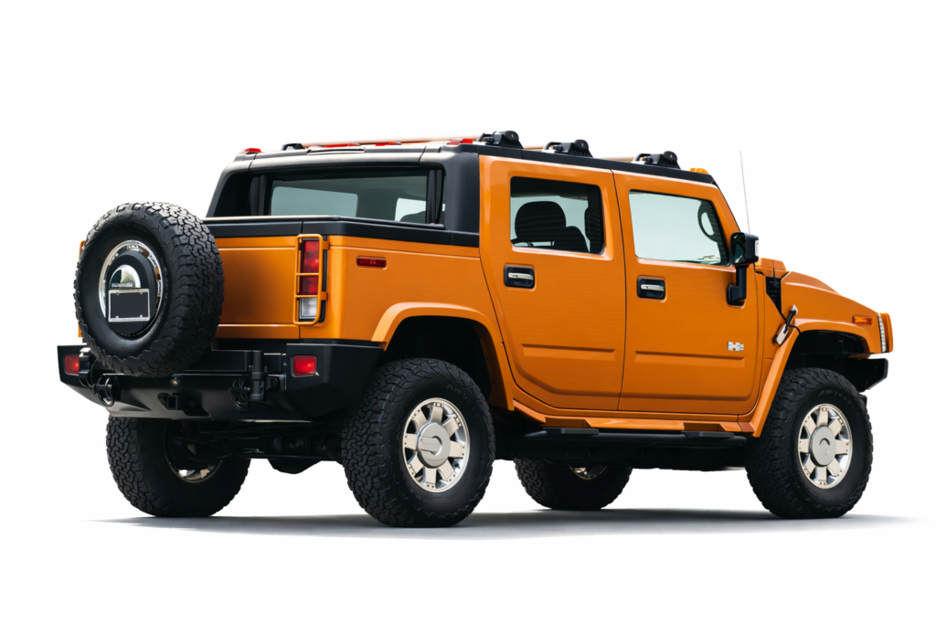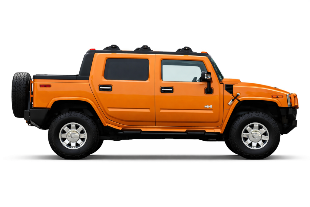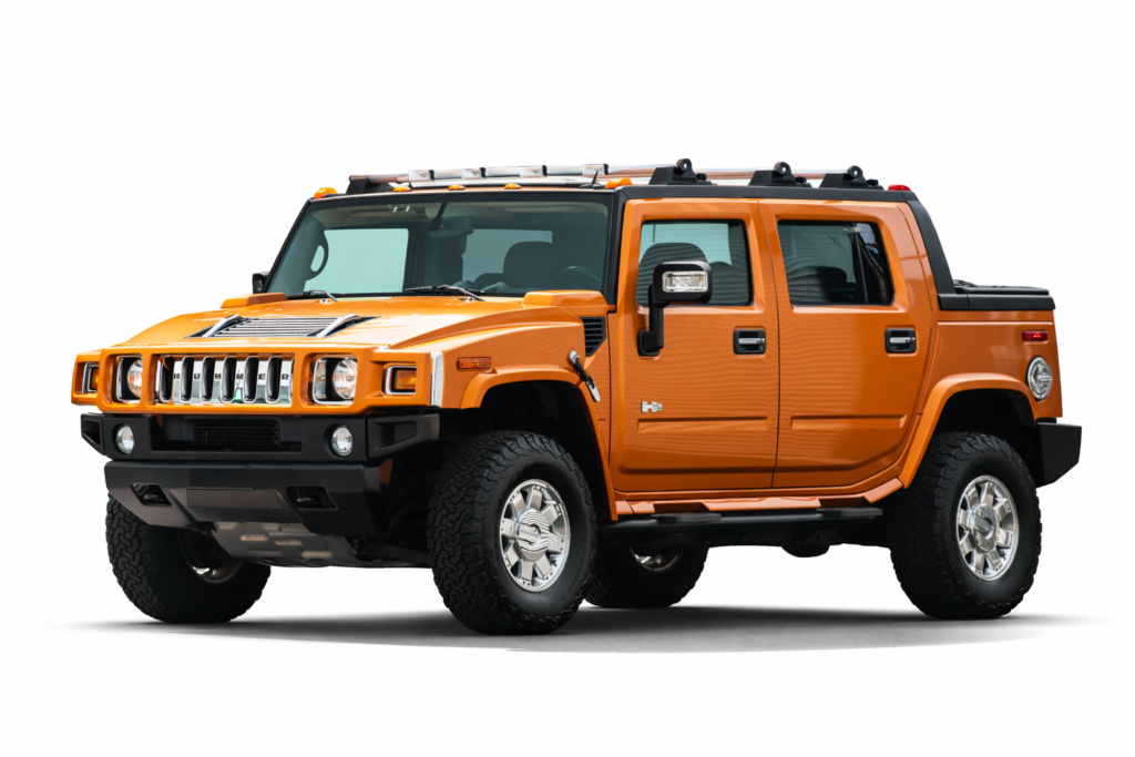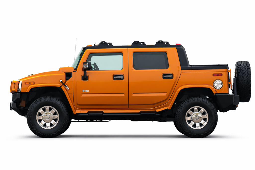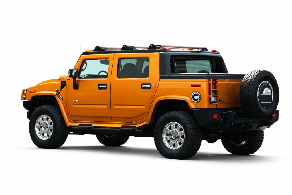 This 2006 Hummer H2 SUT Limited Edition is one of just 1000 examples produced, finished in striking Fusion Orange over Ebony leather upholstery. Power comes from a 6.0-liter Vortec V8 rated at 325 horsepower and 365 lb-ft of torque, paired with a 4L65E four-speed automatic transmission, a dual-range transfer case, and a locking rear differential.